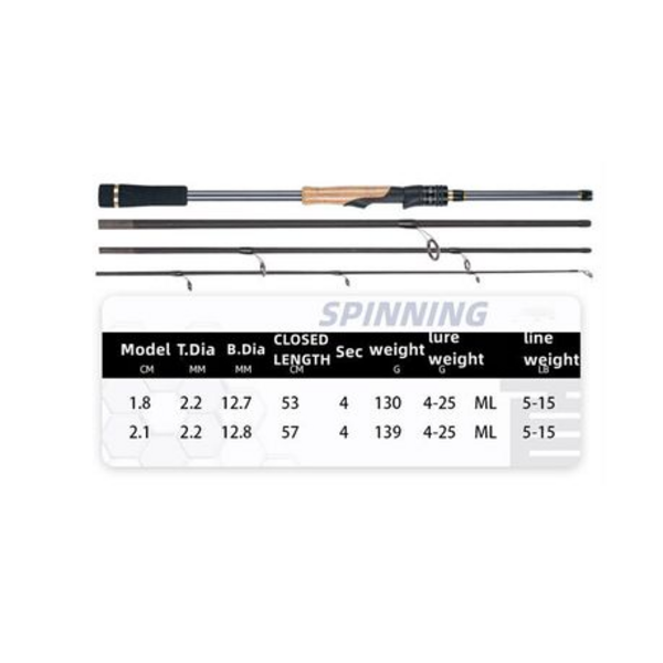 1 x 198cm Portable, Ultra Light Spinning Rod