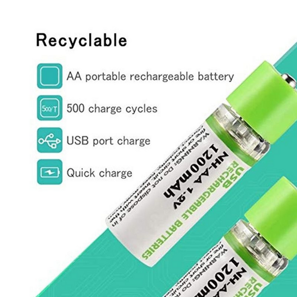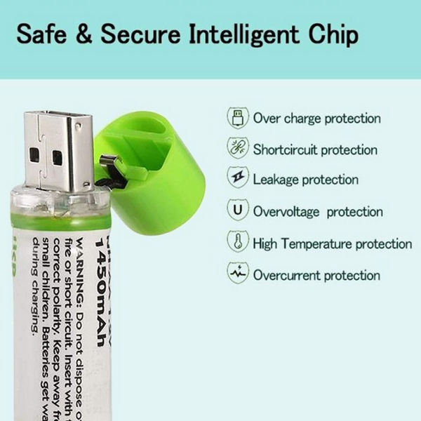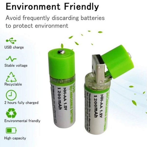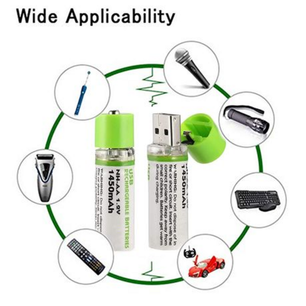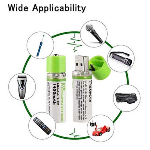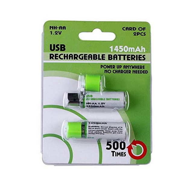 2x USB Rechargeable AA Batteries (1.2V 1450mAh)