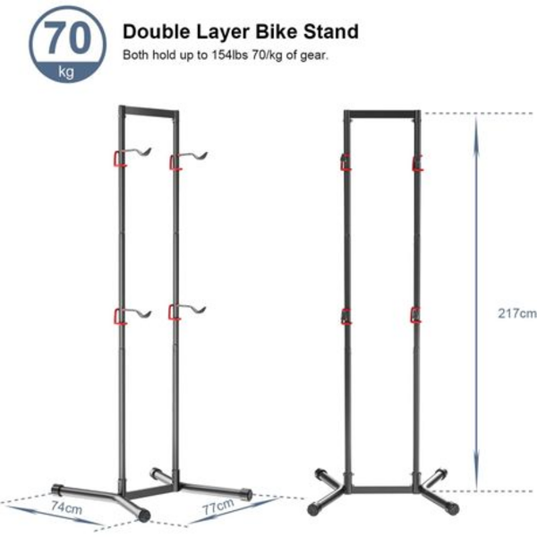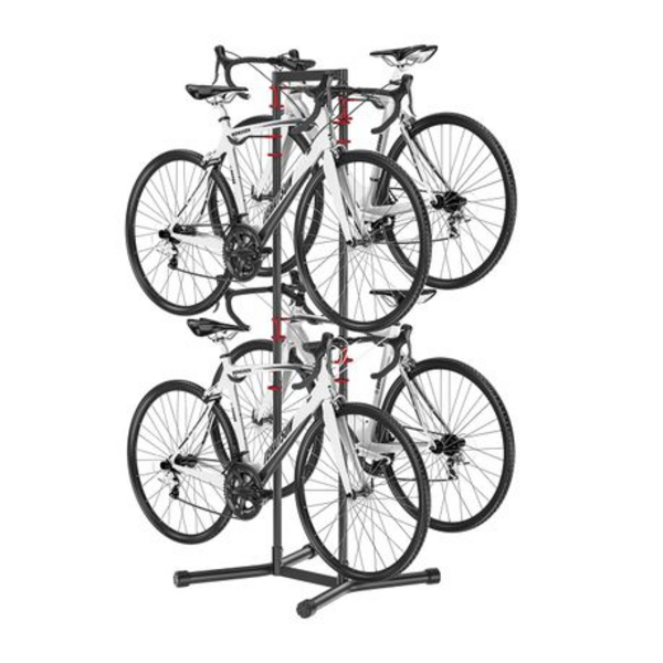 - Holds up to 4 bicycles vertically to maximise floor space in garage, flat or shop.