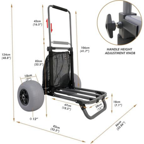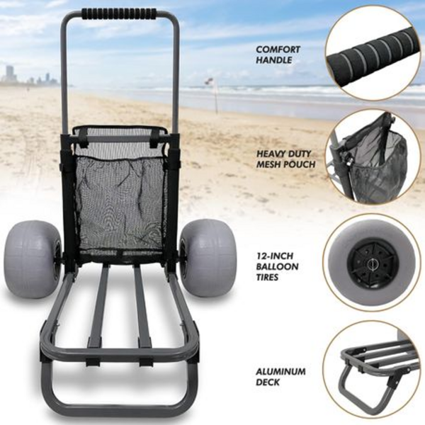 – Big Balloon Wheels: 12-inch (30.5 cm) wheels easily roll over sand, ensuring smooth transportation.