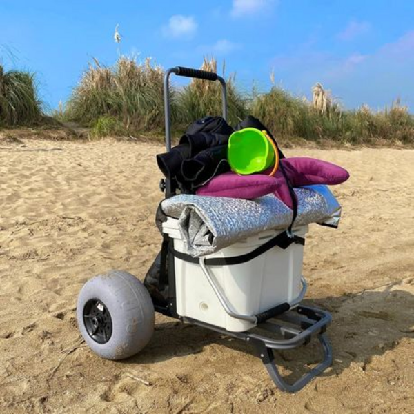 Take the hassle out of your beach days with our Collapsible Beach Trolley Cart, featuring 12-inch big balloon wheels designed for easy maneuverability on sand. This heavy-duty beach cart combines durability with convenience, making it the perfect companion for transporting all your beach essentials.