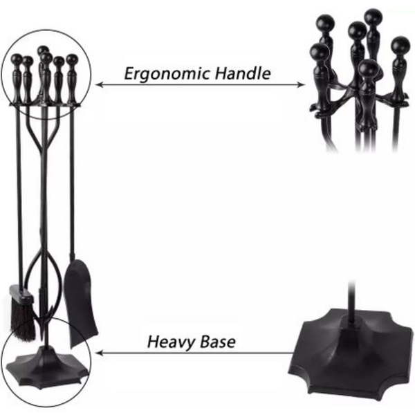 Enhance the beauty and functionality of your fireplace with this Elegant 5 Piece Fireplace Toolset, combining style, durability, and convenience in one elegant package.