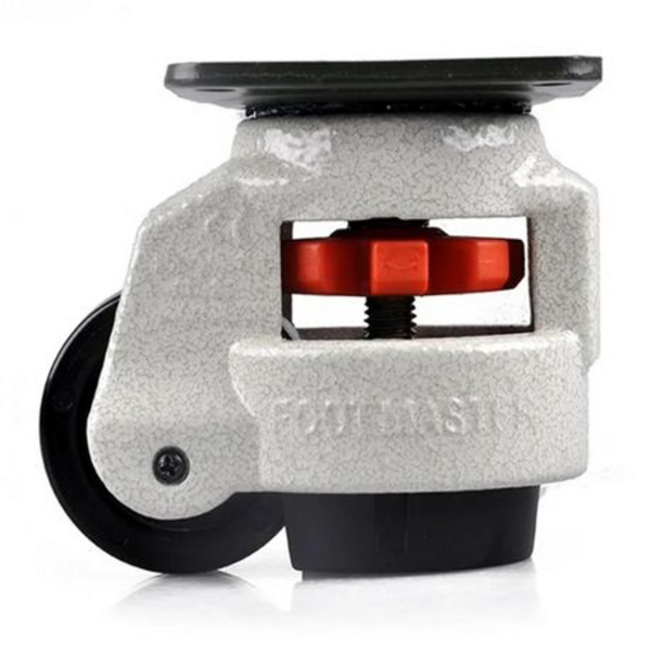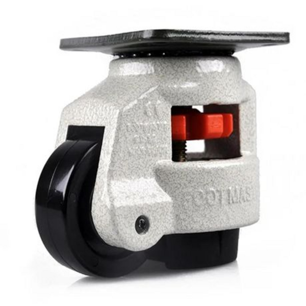The urethane wheels roll smoothly and quietly, while the integrated rubber foot pad can be lowered to stabilize equipment during use or storage. This feature helps prevent vibration and unwanted movement without the need to remove the wheels, making it perfect for machines that frequently move and stop, such as CNC tables, medical equipment, or mobile tool cabinets.