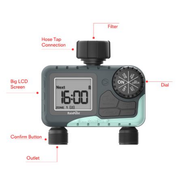 1 x RainPoint Digital Irrigation 2 Zone Timer