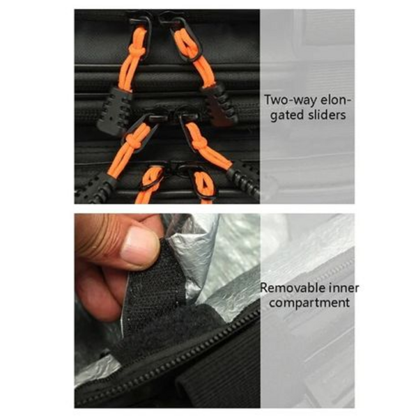 • Heavy-Duty Zippers & Straps – Two-way sliders, reinforced handles, and adjustable padded shoulder strap for all-day comfort